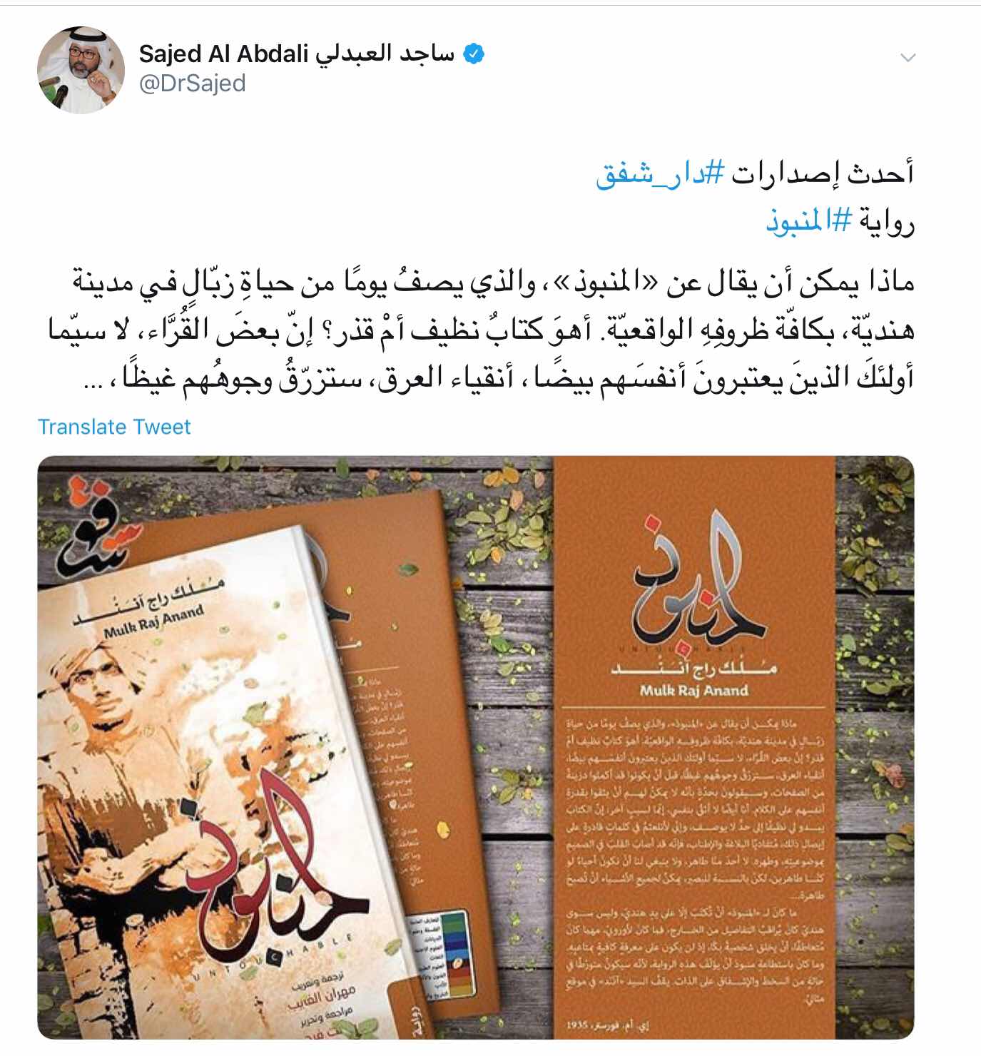 تحمست يوم الأربعاء الماضي عندما قرأت عن إصدار دار شفق لرواية المنبوذ